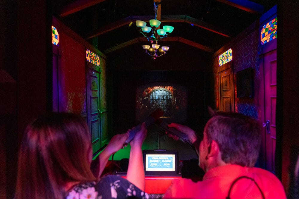 Some dark rides attempt to tell a story, while others are just a collection of random scenes. Many dark rides, such as the Buzz Lightyear attractions at the Disney parks, now include interactive features like onboard guns so that passengers can score points and compete with one another. Industry stalwart Sally Dark Rides helped pioneer interactivity for the genre and creates breakthrough attractions such as Haunted Hotel at Funtown USA in Maine.